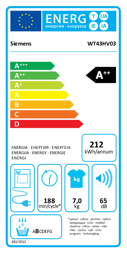 Ob es sich um einen Kondensationstrockner handelt, können Sie auch am Energielabel erkennen: Kondenstrockner sind durch eine Wasserschublade oben links im Gerätesymbol gekennzeichnet.